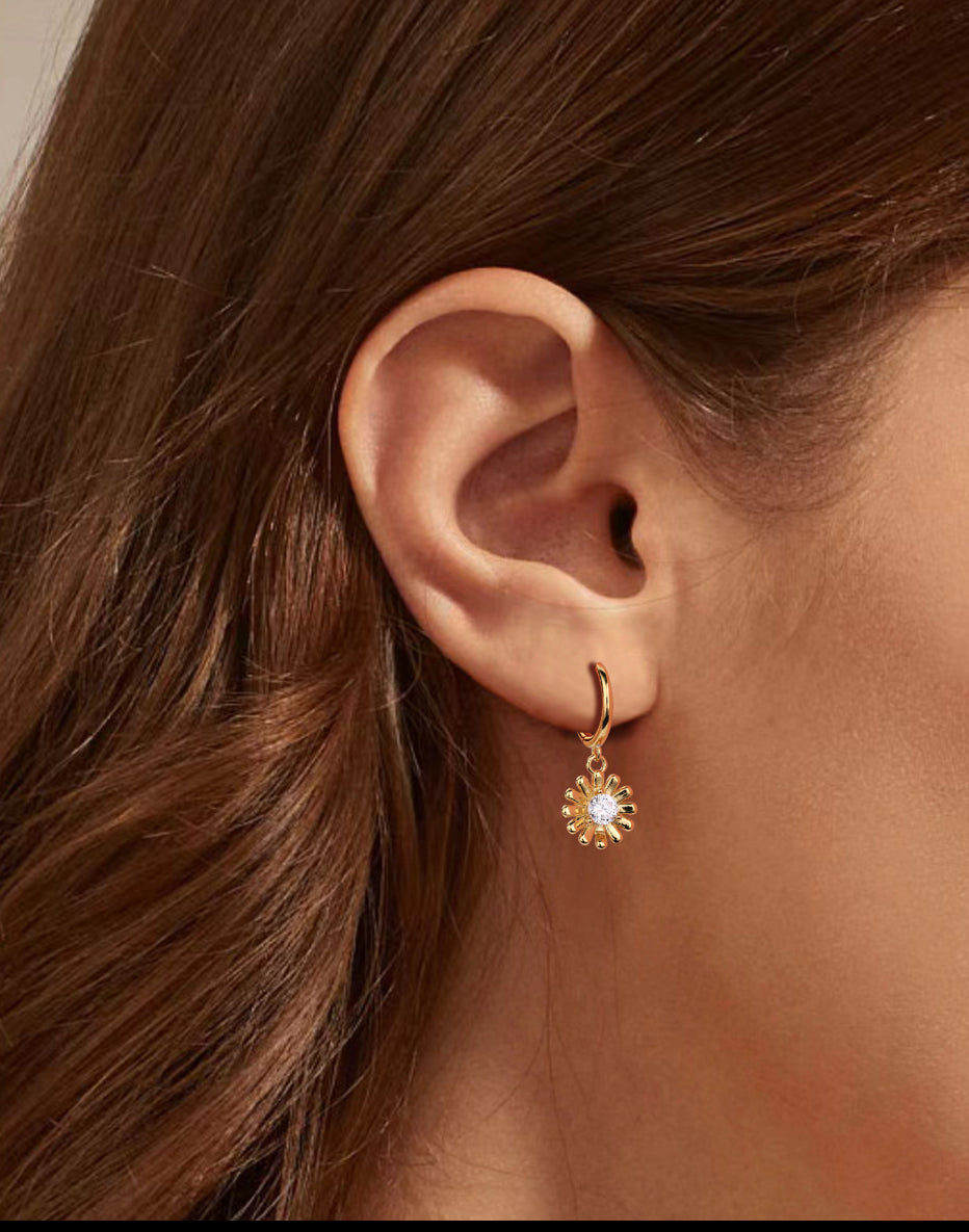 "Add a touch of elegance to any outfit with Daisy, our 18k gold-plated 92.5 silver earrings. With their timeless design and high-quality materials, these earrings are sure to become a staple in your wardrobe for years to come. Perfect for any occasion, these earrings are a must-have for any fashion-forward individual."
