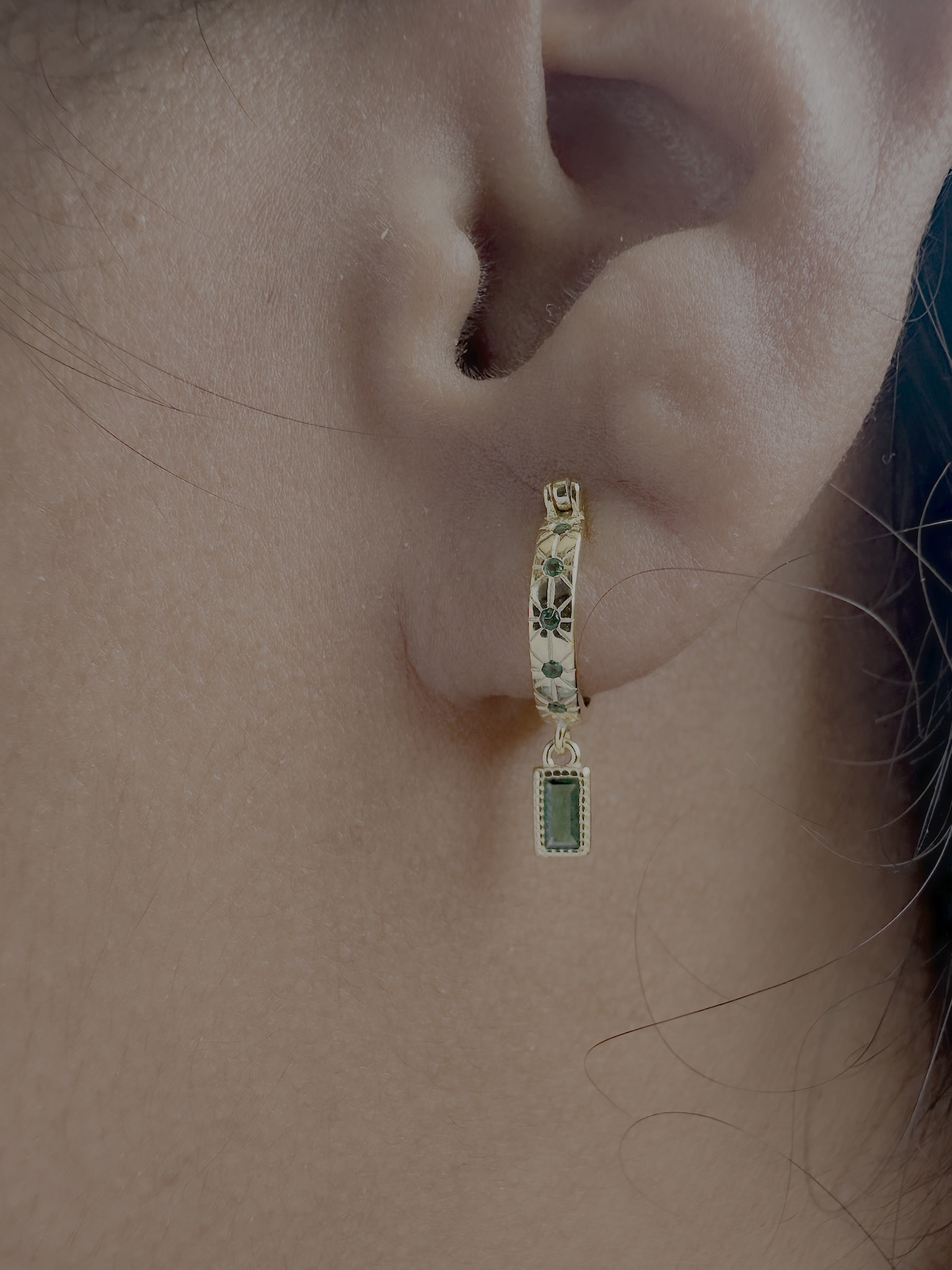 These elegant Olivine earrings are made of 92.5 silver and plated with 18k gold, giving them a touch of luxury. The high quality materials make them durable and timeless. Perfect for adding a touch of sophistication to any outfit.