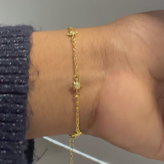 Orione is crafted with 18k gold plated Nickel free 92.5 silver, ensuring a lasting shine and protection against tarnish. Expertly designed and constructed, this bracelet is the perfect blend of luxury and durability for any occasion.